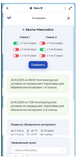 4- информирование об актированных днях обновляется дважды в день: в 6 утра для 1 смены и в 11:30 для 2 смены.